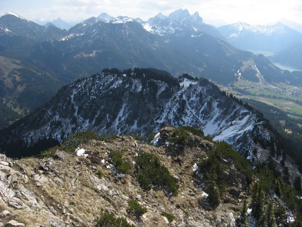 Tourenverhältnisse: Bei der Anfahrt auf der Planseestraße war ich angesichts der weißen Berge noch etwas skeptisch, ob ich ein gutes Ziel ausgewählt habe. Jedoch waren die Tourenverhältnisse perfekt: Weg vom Parkplatz bis zum Gipfel aper und meist trocken (nur ganz wenige batzige Stellen).