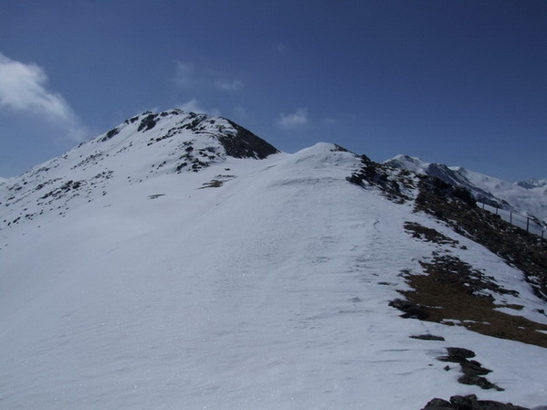 - ab Geländekante (ca. 1900-2000m) dann der Winter-Route folgend (Markierung durch Stangen); sehr angenehmer Schnee; in der Früh noch schön hart, ab vormittag schönster Firn, keinerlei "Einbrüche"