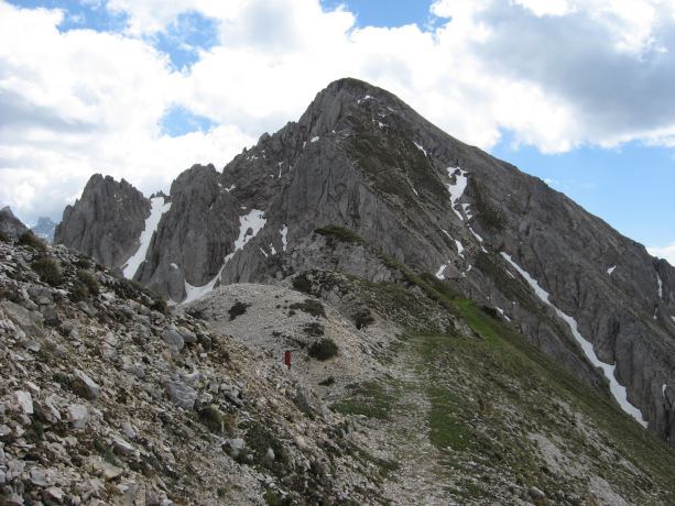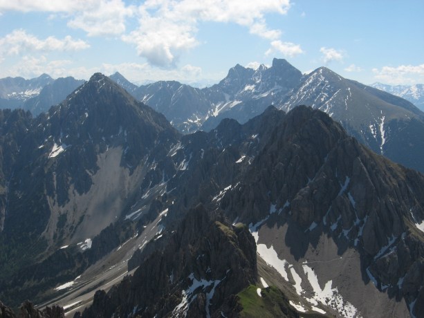 Tourenverhältnisse: sehr gut. Aufstieg über Schartlehner Haus und Nördlinger Hütte, Abstieg nach Norden über Härmelekopf und Reither Jochalm. Alle Wege - also auch der Nordabstieg vom Gipfel - waren aper und trocken; vom Neuschnee war nichts mehr zu sehen.