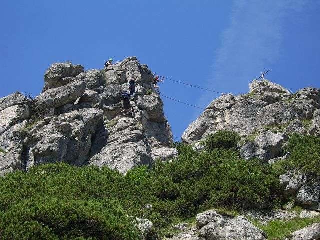 Tourenverhältnisse: Der Weg ist an manchen Stellen etwas ausgewaschen, mit vernünftigem Schuhwerk keine Probleme; Klettersteige sind bestens in Schuß; Schwierigkeiten B-E je nach Variante; der Zustieg zur 3. Sektion teilweise erdig und feucht