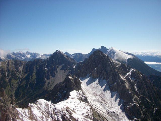 Tourenverhältnisse: Herbstlich, aber ganz wunderbar. Klarer Luft, beste Sicht in alle Richtungen auf die frisch überzuckerten Berge. Bis ca. 10.30 im Tal Nebel, angenehme Temperaturen.