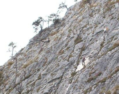 Tourenverhältnisse: Angenehm warm und trocken. Eine nette Spitztklettersteigtour im C/D-Bereich für den Spätherbst wenn man sonnige Südseiten sucht (auch wenn es heute bewölkt war). Die Platten erfordern viel Armkraft, gut gefallen hat mir persönlich die "Gamsbrücke", eine Drahtseilbrücke beim Abstieg. Ansonsten ist den Beschreibung hier