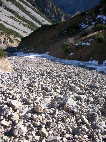 Tourenverhältnisse: Problemlos machbar. Sind über die Geröllreisse auf- und abgestiegen, lediglich hier muss ein kleiner Lawinenrest gequert werden wo man nicht rutschen sollte, gute Trittspuren aber vorhanden.