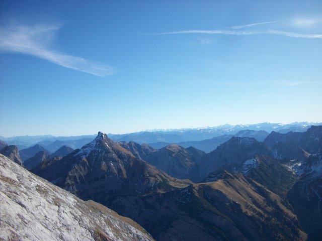 Wie auch die letzten Tage traumhaftes Herbstwetter. Nur am Gipfel recht windig, Mütze und Handschuhe angenehm. Leider haben die Ahornbäume bereits alles Laub abgeworfen, dafür leuchten die Lärchen in herrlichem gelb-rot.