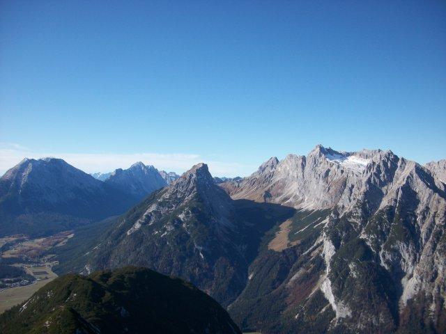 Tourenverhältnisse: Auch der heutige Tag war wieder ein Geschenk! Bin vom Mittenwalder Bahnhof mit dem Radl in die Leutasch, danach auf die Hintere Arnspitze wie im http://www.tourentipp.de/de/touren/details.php?id=614 beschrieben, nur andersherum. Also Aufstieg über Zwirch- und Weißlehnkopf, Abstieg über den Hohen Sattel. Der Vorteil ist ganz klar: Auch wenn der Aufstieg sehr steil ist, gewinnt man sehr schnell an Höhe und schont die Knie. Er ist gut (neu?) markiert, ich hatte keine Probleme bei der Wegfindung wie es in den Beschreibungen meistens heißt. Angenehme Kraxelei auf den Gipfel und tolle Rundumschau. Abgestiegen bin ich über den Hohen Sattel und dann mit dem Radl nach Mittenwald zurück. Temperaturen angenehm warm, am Gipfel etwas zugig.
