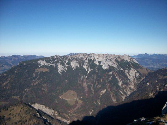 Tourenverhältnisse: Sonnig und warm, nur am Gipfel ein schwaches Lüfterl. Wolkenloser Himmerl, unendlich weite Sicht. Die Nord-Süd-Überschreitung über den Widauersteig wäre machbar gewesen, war uns aber zu schattig - es ist halt doch schon November und die Tage sind kurz. Deshalb haben wir uns für eine "Südreibn" entschieden, die keine Wünsche offen gelassen hat: Aufgestiegen sind wir vom Ausgangspunkt über die Schießlinghöfe zur (Kaiser-)Hochalm und über die Sonnenhöchfelln zum Scheffauersüdsteig und weiter zum Gipfel. Abgestiegen über die Steiner Hoch- und Niederalm retour zum Jägerwirt.