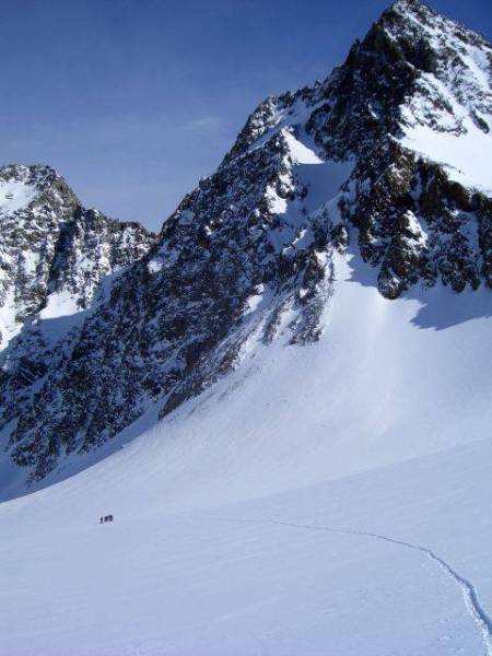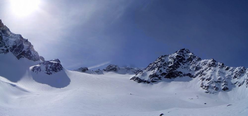 Tourenverhältnisse: Beste Bedingungen! Tour war unverspurt, am Gletscher Pulver, in tieferen Lagen schon etwas aufgeweicht aber gut fahrbar.