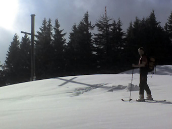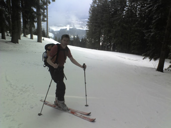 Tourenverhältnisse: Über die Piste (seit einer Woche wegen Revision kein Betrieb mehr) zum Blomberg und noch rüber Richtung Heigelkopf. Bei der ersten Abfahrt (9 Uhr) firnte die Piste oben minimal, unten leicht auf - weil es soooo schön zu fahren war, sind wir gleich nochmal rauf und hatten auch bei der zweiten Abfahrt besten Genuss.