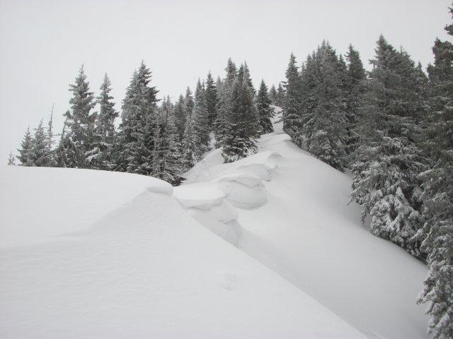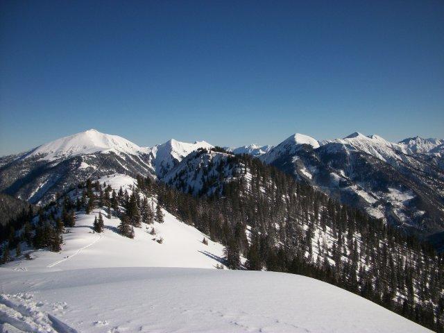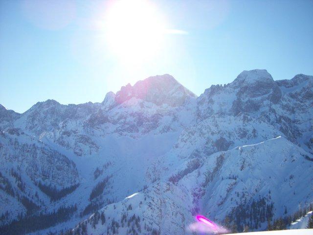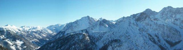 Tourenverhältnisse: Schön winterlich wie es sein sollte. Lt. Wirt von der Post "so viel Schnee wie schon seit Jahren nicht". Gestern (14.1.) am Schönfeldjoch Pulver vom Feinsten (außer am Gipfel, hier alles windgepresse), das Wetter war schlechter als vorausgesagt, am Gipfelrücken Sicht gegen Null. Heute am Hochalplkopf Pulver und Sonne, beste Tourenverhältnisse und insgesamt wenig los. Sind noch hinüber bis kurz vor die Rappenklammspitze. In der Sonne gut auszuhalten, kein Wind. Im Rontal recht zapfig, dafür war "Schneeschuhcanyoning" durch den Rontalbach möglich.