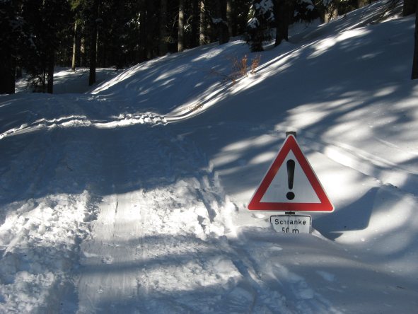 Gefahreneinschätzung: gering auf der "Normalroute", da alles eingefahren (ändert sich mit Wind und Neuschnee aber wieder)