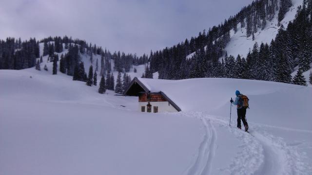 Gefahreneinschätzung: auf dieser Route gering; in den Steilhängen des Hirschberg Schneemäuler und Kleine Bretter sowie stark eingewehte Passagen.