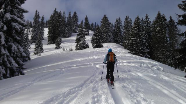 Auch heute wieder Beste Verhältnisse. Schnee schattseitig immer noch sehr schön pulvrig, in der Sonne schon ein bisschen schwer. Hier immer noch Platz für Spuren.
