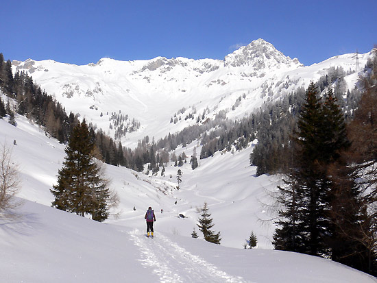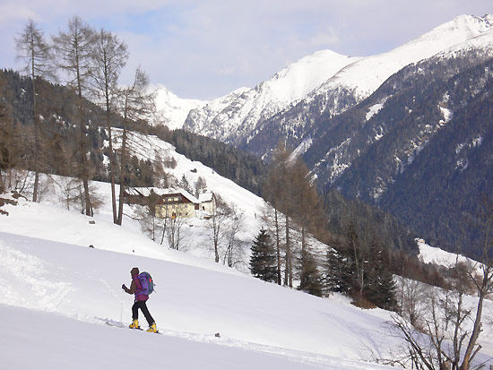 Tourenverhältnisse: recht gute Tourenbedingungen, obwohl es im Lungau nicht die ganz großen Schneehöhen wie in den Nordalpen hat. Gipfellagen und windexponierte Hänge sind zum Teil komplett abgeblasen, an den Ausgangspunkten und im Wald hat es dafür aber ausreichend Schnee.