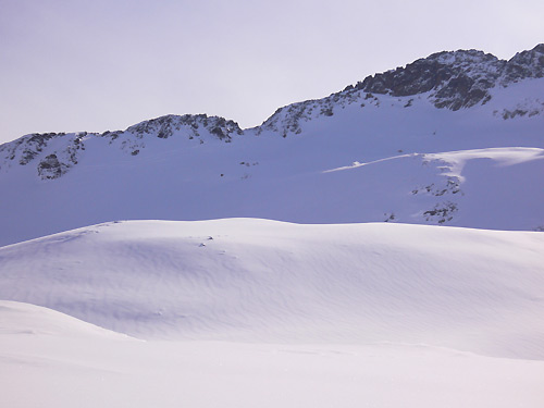 Samstag: Aufstieg Maroiköpfe - Abfahrt nach Langen und Aufstieg Knödelkopf - Abfahrt zur Alpe Rauz (Expo Nord und Nordwest windgepresst, teilweise übelster Sorte)