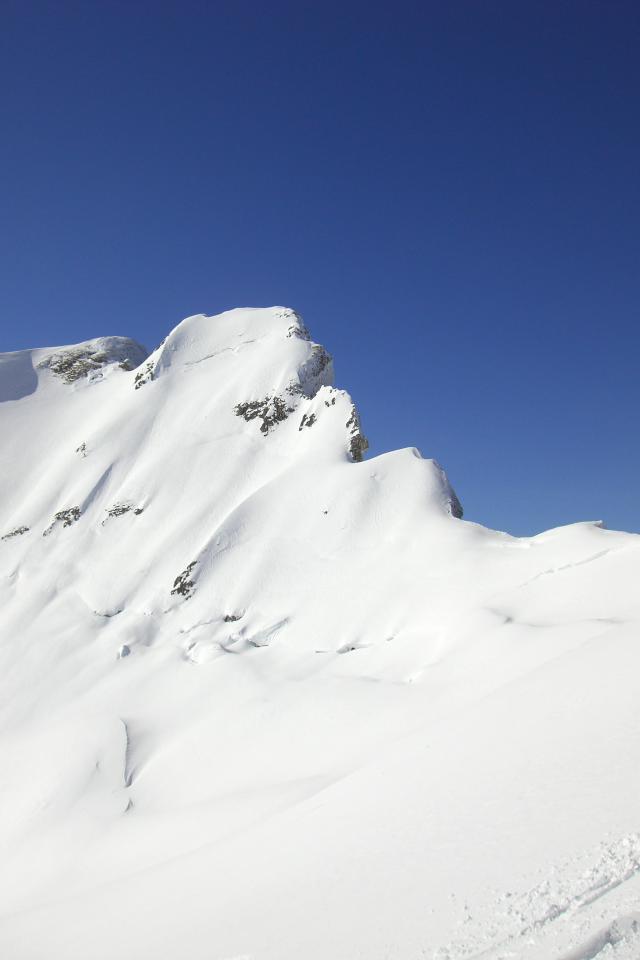 Tourenverhältnisse: Reichlich Schnee und gut gespurt aufgrund vieler Tourengeher. Die Tageserwärmung machte sich bemerkbar - in der Abfahrt wurde der Schnee unten heraus spürbar und die Harschdecke war nciht mehr gebunden. Gipfelhang stark verweht mit Harsch (aufgrund der anderen Spuren trotzdem gut zu fahren).