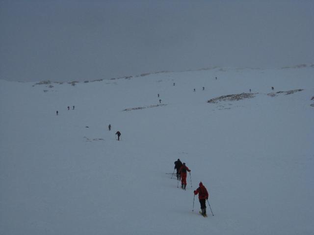 Tourenverhältnisse: Auch hier generell wenig Schnee. Vom Parkplatz über den Forstweg zur Lipperalm. Je höher umso weniger Schnee. Man kann aber über den pistenmässig eingefahrenen Hauptkoridor gut Aufsteigen. Durch den heutigen Nordstau, war die Sicht eher bescheiden.