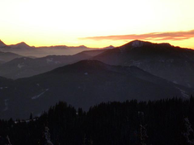 Kleine Abendskitour nach Liftende von der Talstation bis zum Hinteren Hörnle mit einem schönen Sonnenuntergang; die Hörnlehütte war um 18.00 Uhr noch gut besucht, aber nicht überlaufen