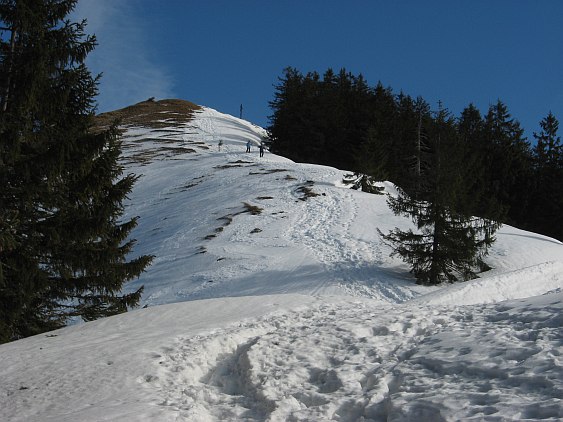 Tourenverhältnisse: Aufstieg über Tegernseer Höhenweg und Waldwirtschaftsweg (Bild 1) zum Gasthof Riederstein/Galaun (hierher gelangt man auch über die Forststraße); dann weiter über Riederstein-Kapelle (Aussicht Bild 2) zum Gipfel (Bild 3). Gut eingetretene Spur vorhanden, die vormittags auch getragen hat. Beim Abstieg ist man dann - besonders am Gipfelhang - schon ab und zu eingebrochen (markante Erwärmung). Insgesamt aber problemlos.