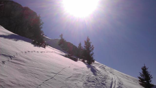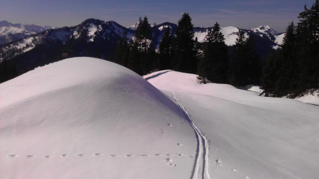 Straße zur Bergwachthütte aper. Ansonsten beste Verhältnisse. Mauskniehohe Pulverauflage auf Harsch. Selbst bei der Abfahrt um 13 Uhr immer noch hart, daher etwas ruppig. Nur in der direkten Sonne recht guter Firn. Tolles Wetter, nur oben leider frischer Wind.
