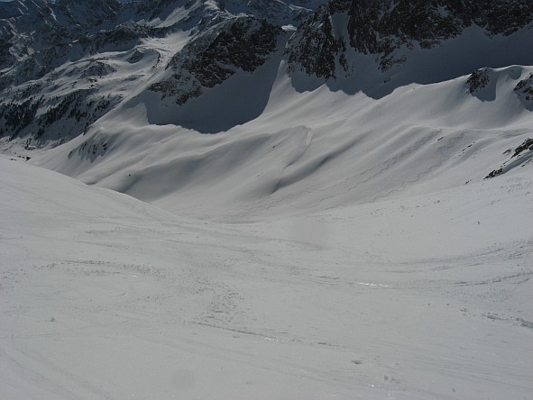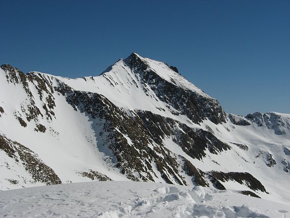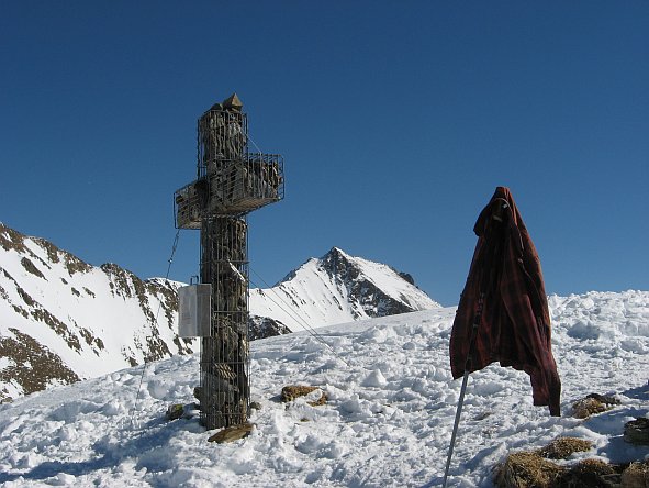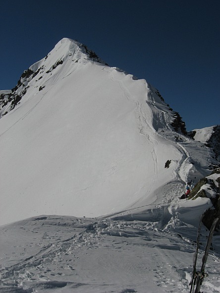 Tourenverhältnisse: sehr gut! Grataufstieg vom Skidepot zum Gipfel problemlos (Spur vorhanden; nicht eisig). Am Gipfel windstill und wolkenlos bei angenehmer "Brotzeittemperatur". Abfahrt: Hänge mit "Butterfirn"; nur die Flachstücke waren teils noch leicht ruppig. Abfahrtszeit: war mittags am Auto.