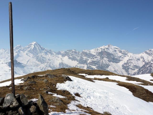 Tourenverhältnisse: die ersten ca. 150Hm muss man das Gerät tragen, da hat's statt Schnee nämlich Krokusse. Danach geschlossenen Schneedecke und schönster Firn von der Früh weg bis ca. 2000m. Im Gipfelbereich des Leitnerbergs viele grosse, apere Stellen und fast mehr braun als weiss (s.Bild 3,5).