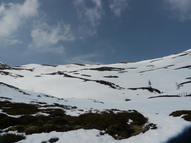 Über eine noch schneegefüllte Rinne hinuntergerutscht zum Eggerjoch und noch den Eggerberg mitgenommen. Unterhalb des Eggerjochs kann man gerade noch so zusammenhängende Schneeflächen finden - aber nicht mehr lange (s.Bild 4). Vorsicht an einigen nur noch dünn überdeckten Bachläufen (hab's ausprobiert)