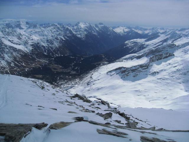 Tourenverhältnisse: Wir waren über Ostern in Splügen stationiert. Am Karfreitag ging es von Splügen auf das Surettahorn. Unten noch ausreichend Schnee, wird aber dünner, weiter über schöne Mulden ins Surettajoch. Den Gipfelgrat haben wir ausgelassen, da der Weg durch die tieibschneegeladene Ostflanke geführt hätte. Alternativ gings auf den Punkt 2923. Abfaht oben noch Bruchharsch, weiter unten dann super Sulz nur die letzten Meter zur Piste des Splügener Skigebiets waren Sumpf.