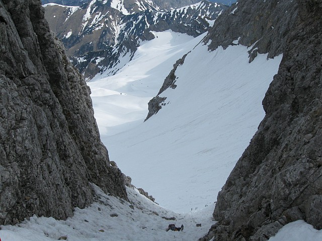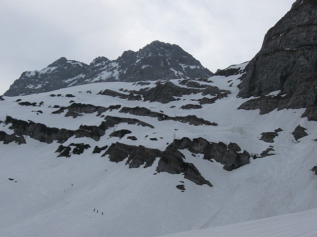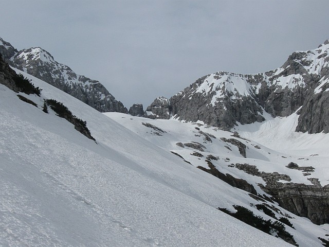 Schneeauflage ohne Harscheisen aufgestiegen, diese sind erst im Kar