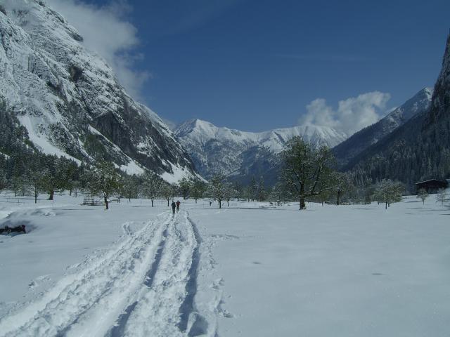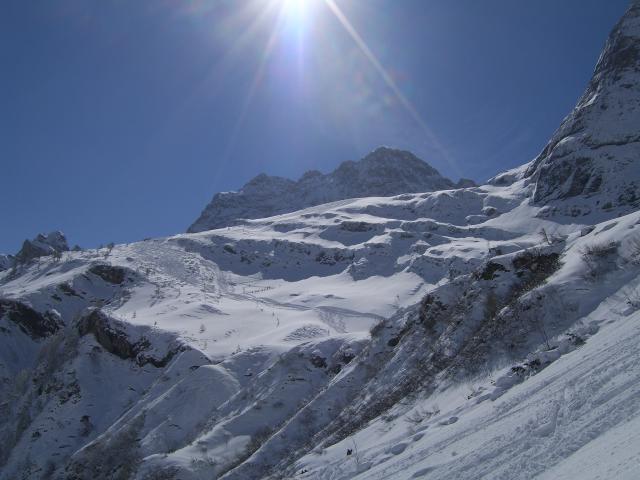 Bei der Abfahrt ab Mittag schon leicht pappig, aber trotzdem konnte man, zumindest bis zum 'Kirchl' das Powder-Feeling, auch in den schon zerfahrenen Abschnitten, erleben. :-))