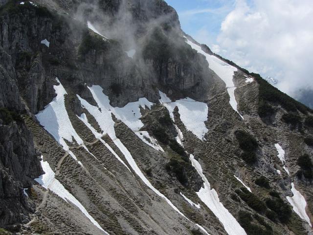 Gefahreneinschätzung: wie bei normalen Verhältnissen; bei den Schneefeldern ist besondere Vorsicht geboten