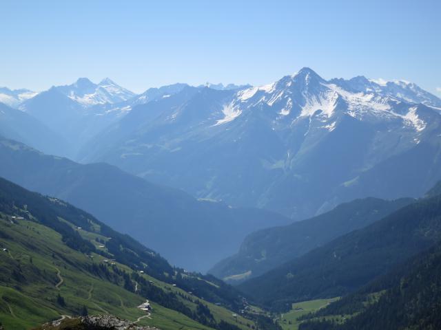 Bild 4 zeigt Seewand, Gipfel und Kraxentrager (Vordergrund), Rastkogel (Mittelgrund) und Olperer (Hintergrund)