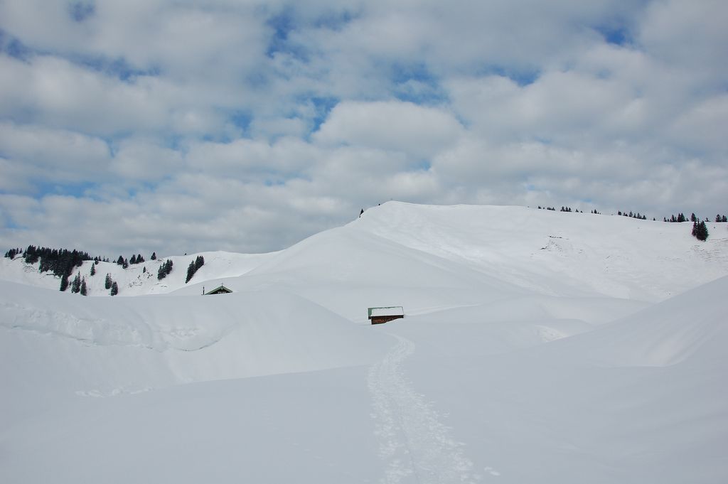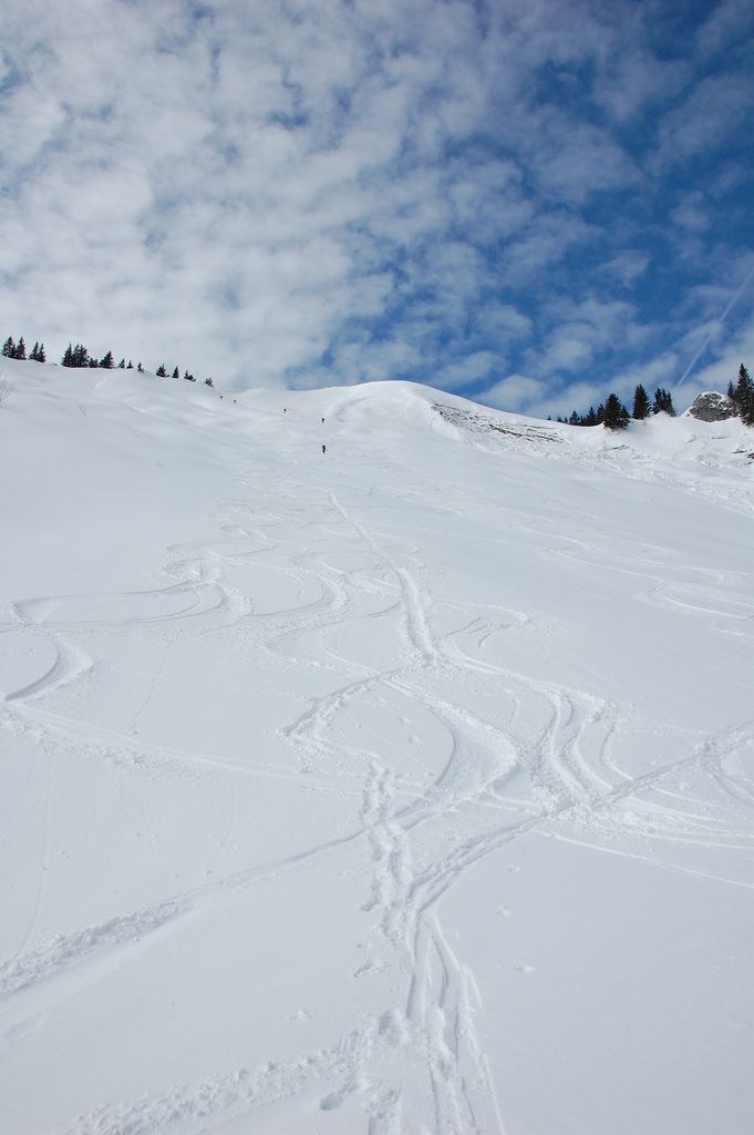Tourenverhältnisse: 5-10 cm Pulver auf fester Altschneedecke, an der Hochplatte mehr durch Windverfrachtung