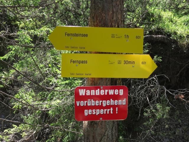 Sonstiges: Der Beginn des Römerwegs 601 Richtung Fernsteinsee war offiziell gesperrt (Bild 3). Ich konnte jedoch keinen Grund erkennen.