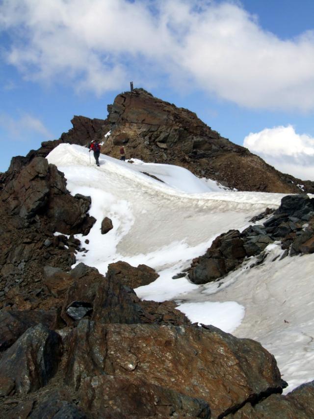 viele Berge gibt's ja nicht, wo man ohne Gletscherberührung, ohne Gekraxel und ohne Hüttenübernachtung auf über 3600m kommt. Auf den Mt. Vioz führt einfach ein Weg (und zwar ein guter!) und kurz unterhalb des Gipfels auf stattlichen 3536m gibt's mit dem Rifugio Mantova al Vioz sogar noch ein Hütte.