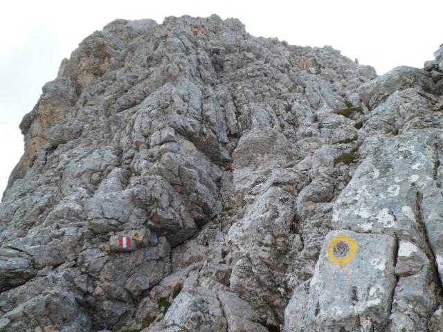Gefahreneinschätzung: Ein paar Kletterstellen ( II ) im Gipfelbereich. Steiler und rutschiger Abstieg durch den Wald.