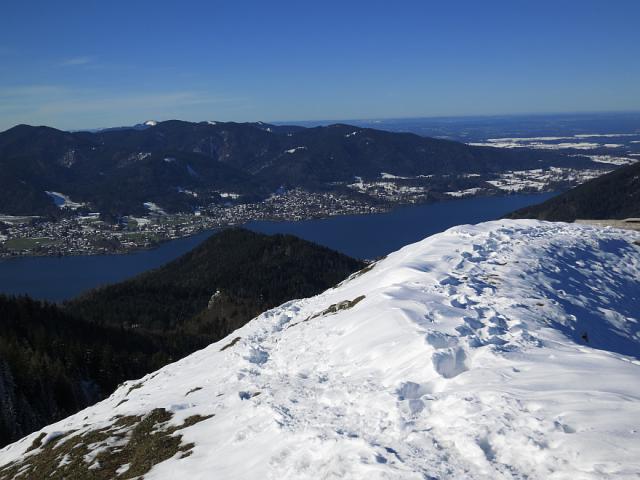 Tourenverhältnisse: Aufstieg über Tegernseer Höhenweg und am neuerdings beschilderten Abzweig über den Waldwirtschaftsweg (Bild 1) zum Gasthof Riederstein/Galaun (hierher gelangt man auch über die Forststraße, die direkt am Parkplatz beginnt); dann weiter über die Riederstein-Kapelle (Aussicht Bild 2 und 3) zum Gipfel (Bild 4 und 5).
