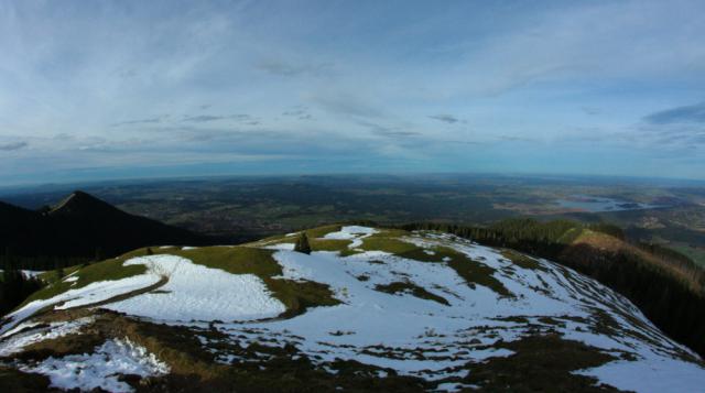 Tourenverhältnisse: Von der Talstation der Hörnlebahn zunächst über die Rodelbahn. Bei der ersten scharfen Rechtskurve weiter auf dem Forstweg bis nach etwa 1 km rechts ein kleiner Pfad abzweigt (18b). Dieser zieht sich zunächst noch trocken durch den Bergwald hinauf bis er auf lichteres Gelände trifft. Ab dort erste Schneereste und zum Teil etwas batzig, aber alles kein Problem. Am Ende verlässt man den Wald knapp unterhalb des Hinteren Hörnle. Aus meiner Sicht eine nette Alternative zum Forstweg. Zurück ging es dann aber über den Forstweg.