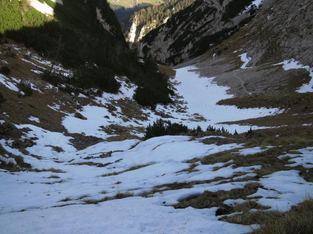 Tourenverhältnisse: sehr gut. Aufstieg nach Osten und Süden (über Roßgassboden), Abstieg nach Westen und Norden (die Rundtour hat Markierung 2). Die Wege waren vorwiegend trocken, nur im unteren Teil manchmal etwas feucht. Beim Abkürzer nördlich vom Hint. Rauschberg lag noch etwas Schnee (Bild 1).