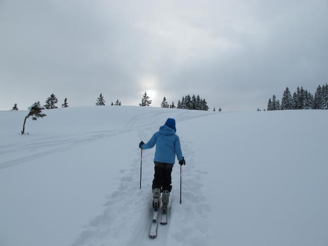 Tourenverhältnisse: Bestens. Auch wenn im Tal erst 20 cm Schnee liegen, war die Piste - Dank Kunstschnee - bestens zu befahren. Oben hat es dann ca. 50 cm Schnee, der sich schon etwas gesetzt hat. Nur im Waldbereich musste man noch etwas aufpassen, aber wir haben keinen einzigen Stein oder sonstiges erwischt. Wetter war zunächst strahlend schön, dann Aufzug von Hoher Bewölkung, bei der Heimfahrt Schneefall.