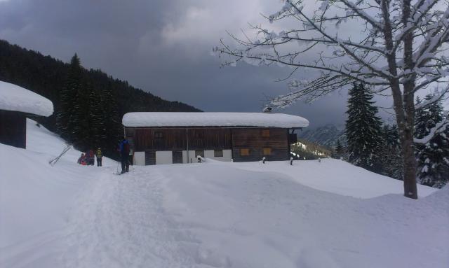 Tourenverhältnisse: Erstaunlicherweise sehr gute Bedingungen. Habe den Gröbner Hals selten so gut erwischt. Vom Parkplatz weg ausreichend Schnee ohne Steinkontakt und auch die Abfahrt durch die Waldschneise ist derzeit sehr gut eingeschneit. Oben ca. 20 cm Pulverauflage auf einer stabilen Schneedecke. Am Gipfel sonnig, windstill und warm.