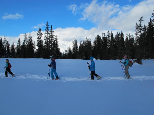 Tourenverhältnisse: Hier gibt es einen (für mich) neuen, präparierten, breiten Weg durch den Wald, der nun von Winterwanderern und Skitourengehern gleichermaßen genutzt wird. Früher war es etwas ruhiger und romantischer, heute geht es bequemer durch den Wald. Es gibt aber auch noch eine Route durch den Wald - ist viel schöner, aber ein Umweg.
