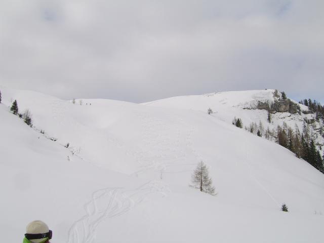 Tourenverhältnisse: Start um 8:00 bei Minus 10°; Forststrasse und Wanderweg gut eingeschneit; der Rücken zum Gipfel ist abgeblasen (geht grad noch mit Ski), ebenso 2-3 Stellen oberhalb der Großzemmalm > Verfrachtungen sind vorhanden. ruhige Gipfelrast; Ansonsten: Powder pur