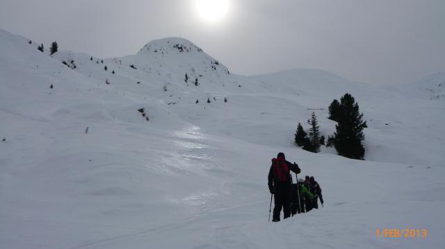 Tourenverhältnisse: Aufstieg zunächst in feuchtem Schnee, der weiter oben pulverig wurde. Zunächst