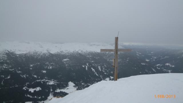 Abfahrt pulverig, aber Blindflug bis zu den Almen. Über den Forstweg zurück.