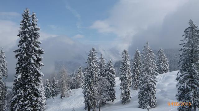 Tourenverhältnisse: Vom Ap hinauf über die Wiesenhänge bis zur Duxer Alm. Dann weiter über die Hänge und zwei Steilstufen hinauf zum Brentenjoch. Kurz vor dem Gipfel kam die Sone heraus.