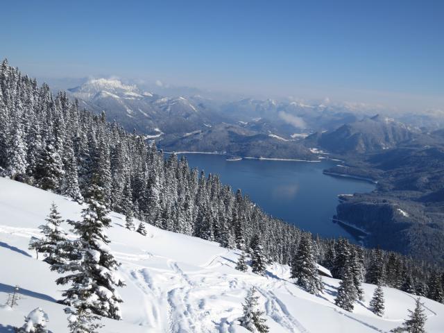 Abfahrt vom Gipfel zur Diensthütte im perfekten Pulver. Hang unterhalb der Diensthütte schon umgepflügt. Weiter durch den Wald gut zu fahren, sogar die Forststraße hat Spaß gemacht.