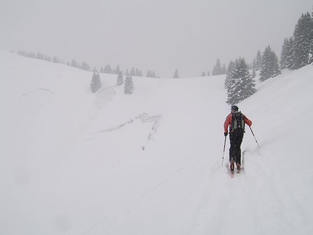 Gefahreneinschätzung: gering bei überlegter Routenwahl; es waren jedoch viele Schneemäuler und m. M. nach auch ein paar frische Abgänge bis zum Grund zu sehen