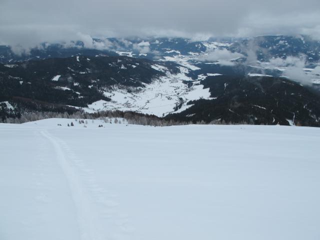Tourenverhältnisse: Entgegen der Wettervorhersage hat es heute nicht aufgemacht und es blieb stark bewölkt. Somit war natürlich eine südseitige Tour nicht die richtige Wahl, denn der Schnee hatte in dieser Exposition eine Kruste und Mangels Sonne bleib es auch dabei. Oben ziemlich neblig.