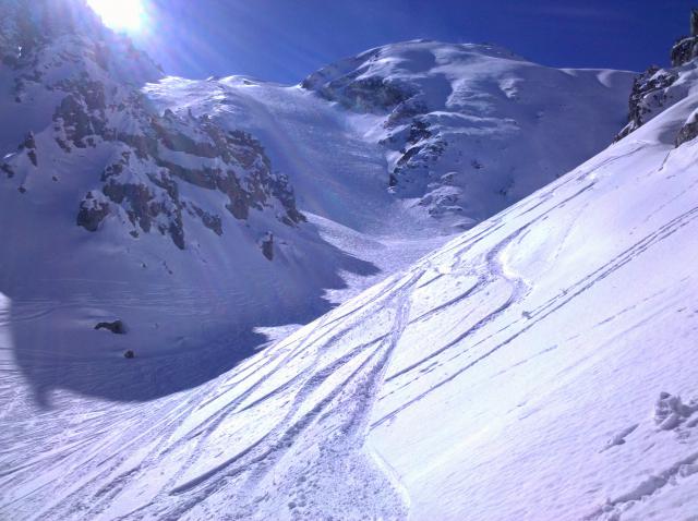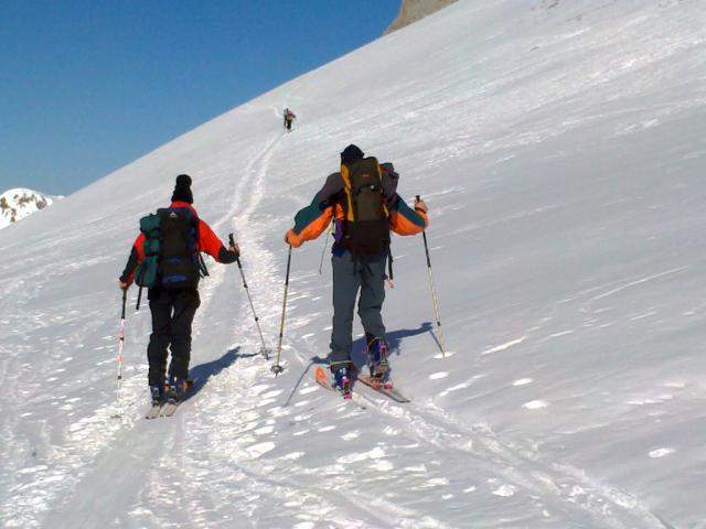 Sonstiges: Wir sind bis zur Wimbachbrücke, mit drei mal kurz abschnallen abgefahren. 5 Minuten Tragestrecke. Wird sich mit Erwärmung und Regen schnell ändern. Sicher eine der großzügigsten Skitouren in den deutschen Alpen. Gesamt ca. 3500 Hm und 45 Km zu gehen.