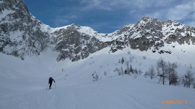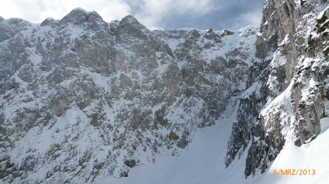 Abfahrt z.T. entlang der Aufstiegsspur, allerdings heute in schwerem, feuchtem Schnee, was man nicht